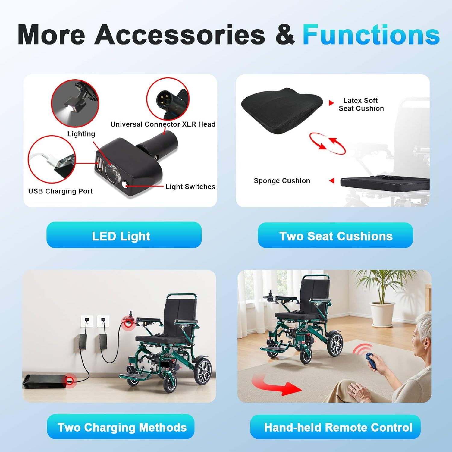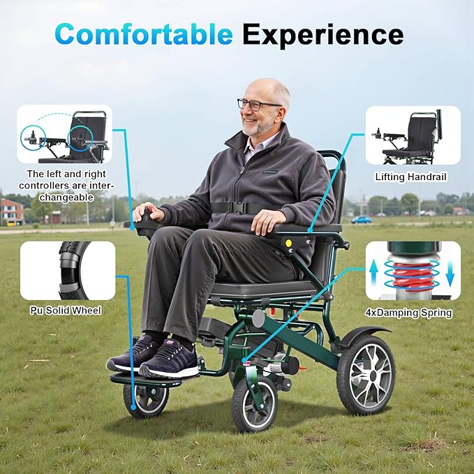 PU solid tires, anti-tipping wheels, and electromagnetic brakes ensure safe driving on slopes and rough surfaces.