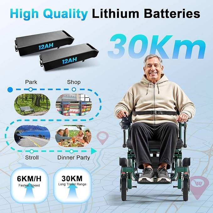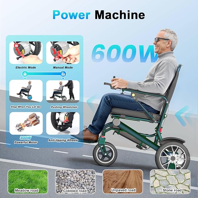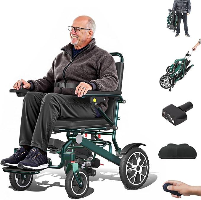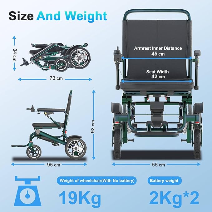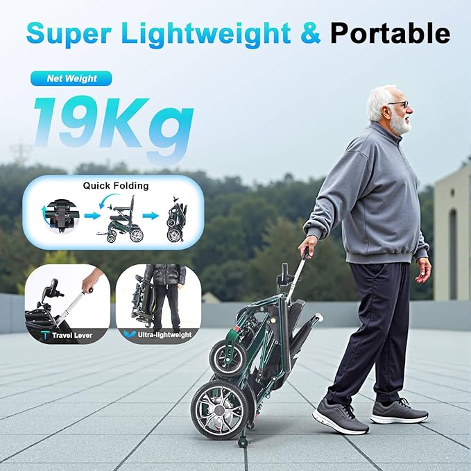 19Kg Ultra Lightweight Portable Compact Adult Travel Electric Wheelchair, 600W high Power Motor, 24Ah Battery, 30Km Long Range, Elderly motorised Chair, Airline Approval (Aurora Green)