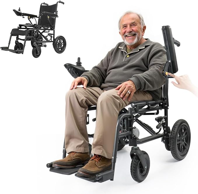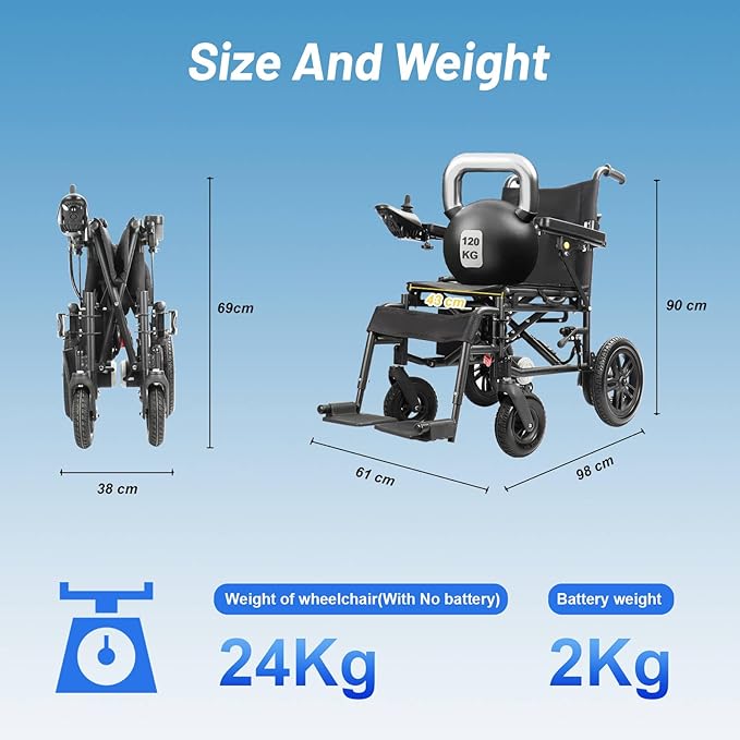 Adult Electric Wheelchair, Elderly motorised Mobility Chair, Portable (24Kg Without Battery), 2 x 300W high Power Motor, 12Ah Lithium Battery, Carbon Steel Frame with 120Kg Load Capacity (Black)