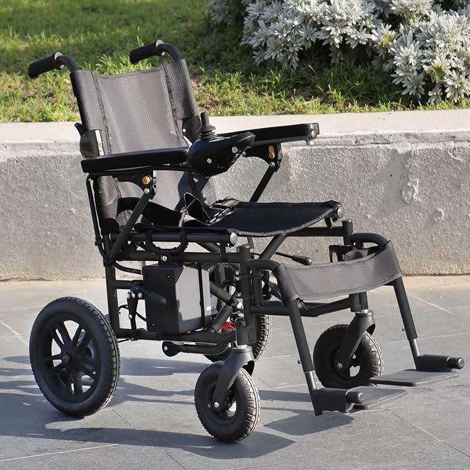 Safe and durable-Compact folding electric wheelchair features a sturdy carbon steel frame, ensuring long-term stability and reliability. It can adapt perfectly to various terrains and easily handle different road conditions, ensuring a smooth ride. The wheelchair is equipped with multiple braking systems, including reliable manual brakes and sensitive hill-hold brakes, providing effective braking performance in different situations.